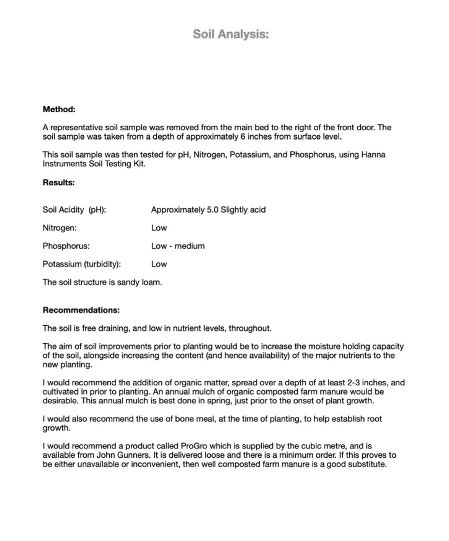 We can arrange a home visit to assess the soil type that you have, and undertake soil nutrients and acidity tests.